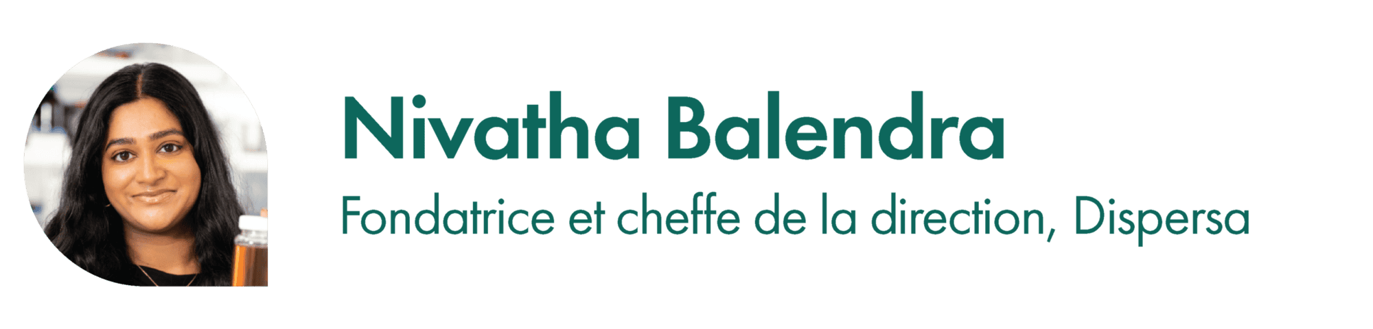 Nivatha Balendra est cheffe de la direction et fondatrice de Dispersa, une jeune entreprise d’écotechnologie qui a développé les premiers agents de surface dérivés des déchets au monde. Il s’agit d’une solution de rechange naturelle pour un des principaux ingrédients que l’on retrouve dans des produits d’usage courant, comme les savons, les détergents et les nettoyants. Dispersa, qui a obtenu plus de 14 millions de dollars en financement et suscite un intérêt commercial grandissant, est une jeune entreprise cheffe de file du secteur des écotechnologies qui s’est donné pour mission de populariser les agents de surface circulaires.