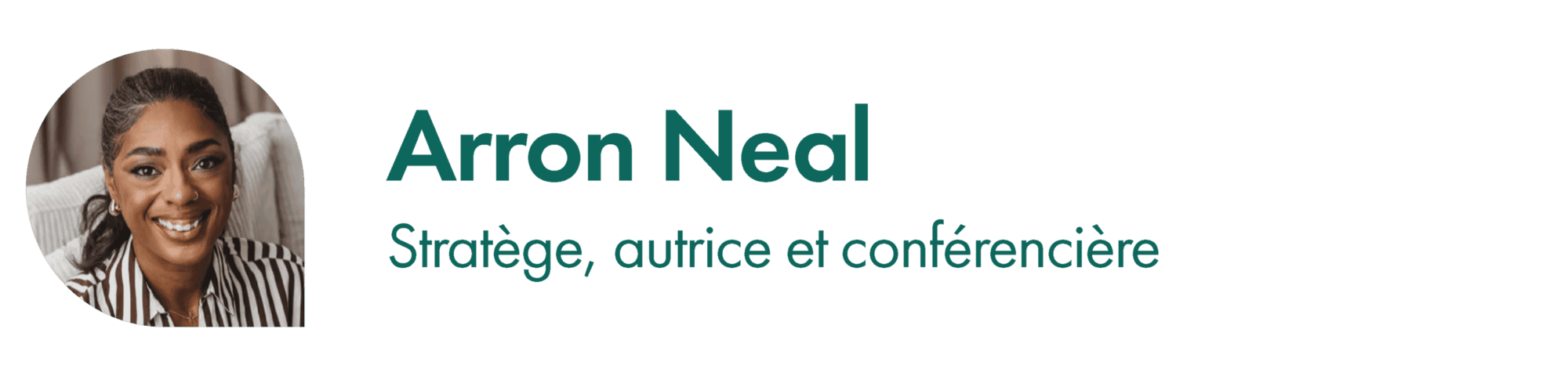 Arron Neal est une stratège en communications, autrice et conférencière montréalaise qui aide à faire le lien entre la mission, la stratégie et la réelle prise de décisions.